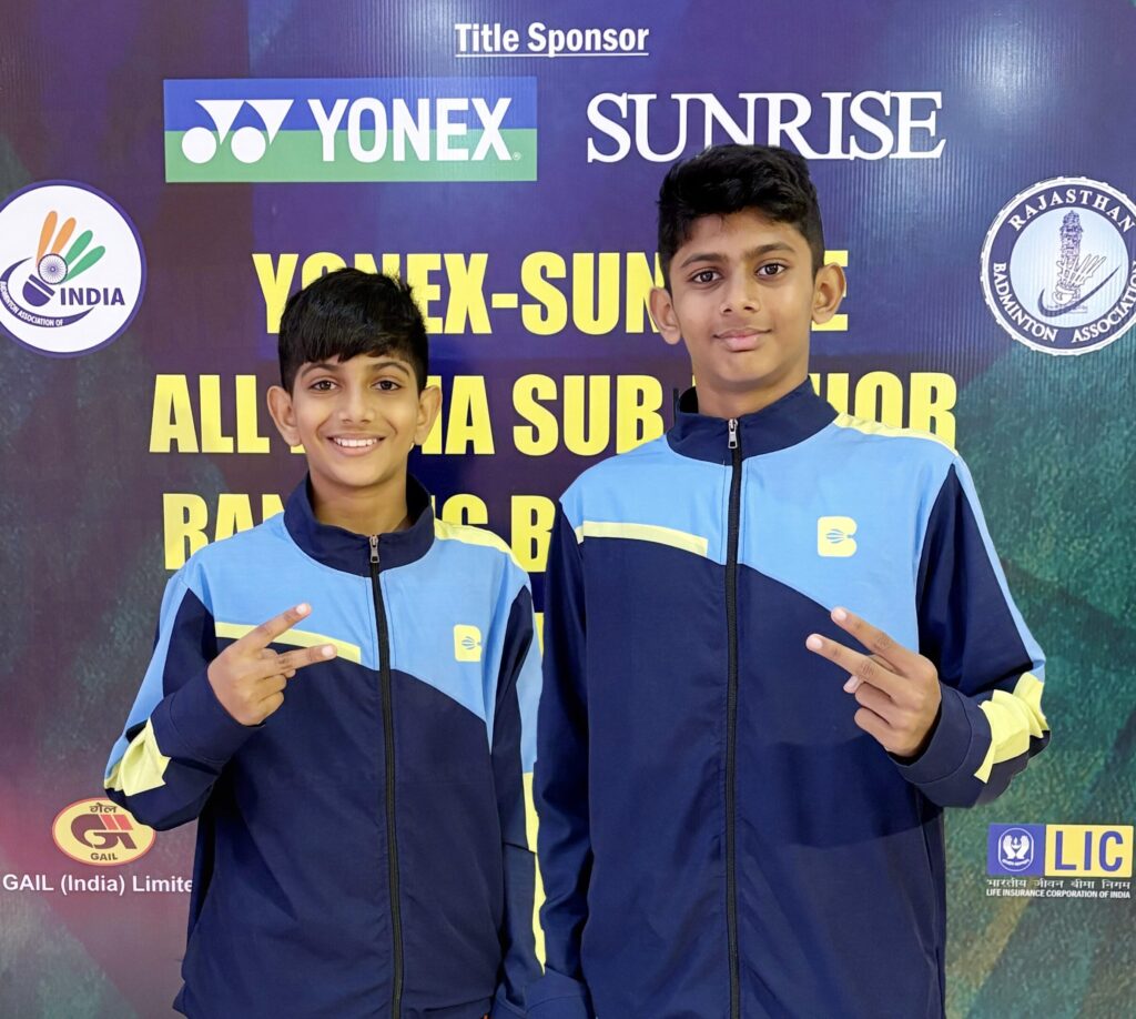 Our Elite-level talents, Atharv Rajesh K and Vivaan Deepu, are currently representing Battledoor Badminton Coaching Academy at the Yonex-Sunrise All India Junior (U15 and U17) Ranking Tournament in Jaipur!